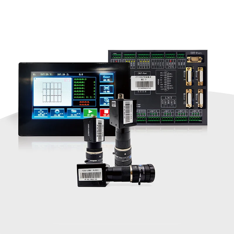ZY712S2-130 Precision Visual Positioning Laser Control System CCD har avanserte visjonsposisjoneringsevner. Systemet er utstyrt med et 1,3-megapiksel industrikamera, og støtter 3-akset bevegelseskontroll og er spesialdesignet for komplekse, høye presisjonslaserskjæreoppgaver. Den har et 7-tommers berøringsskjermgrensesnitt og integrerer avansert visuell posisjoneringsteknologi, og oppnår underpiksler nøyaktighet for presis gjenkjennelse og justering av skjæringsmønstre, og sikrer dermed eksepsjonell skjæringskvalitet.