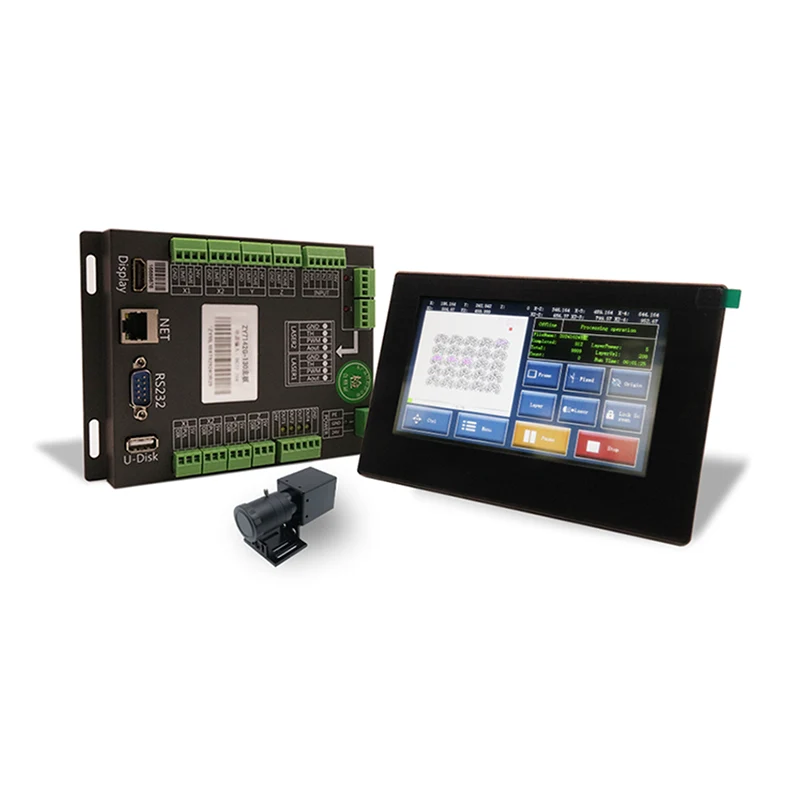 ZY7142G-130 Visual Positioning Laser Cutting Control Board for Digital Printing bruker et 1,3-megapiksel industrikamera, som nøyaktig kan identifisere og justere maler for skjæring. Dette systemet støtter 4-aksekontroll og er utstyrt med en 7-tommers berøringsskjerm, noe som muliggjør enkel drift og kontroll. Den støtter multitemplate-gjenkjennelsesfunksjonen, slik at den kan behandle flere maler samtidig og sikre skjæring med høy presisjon.